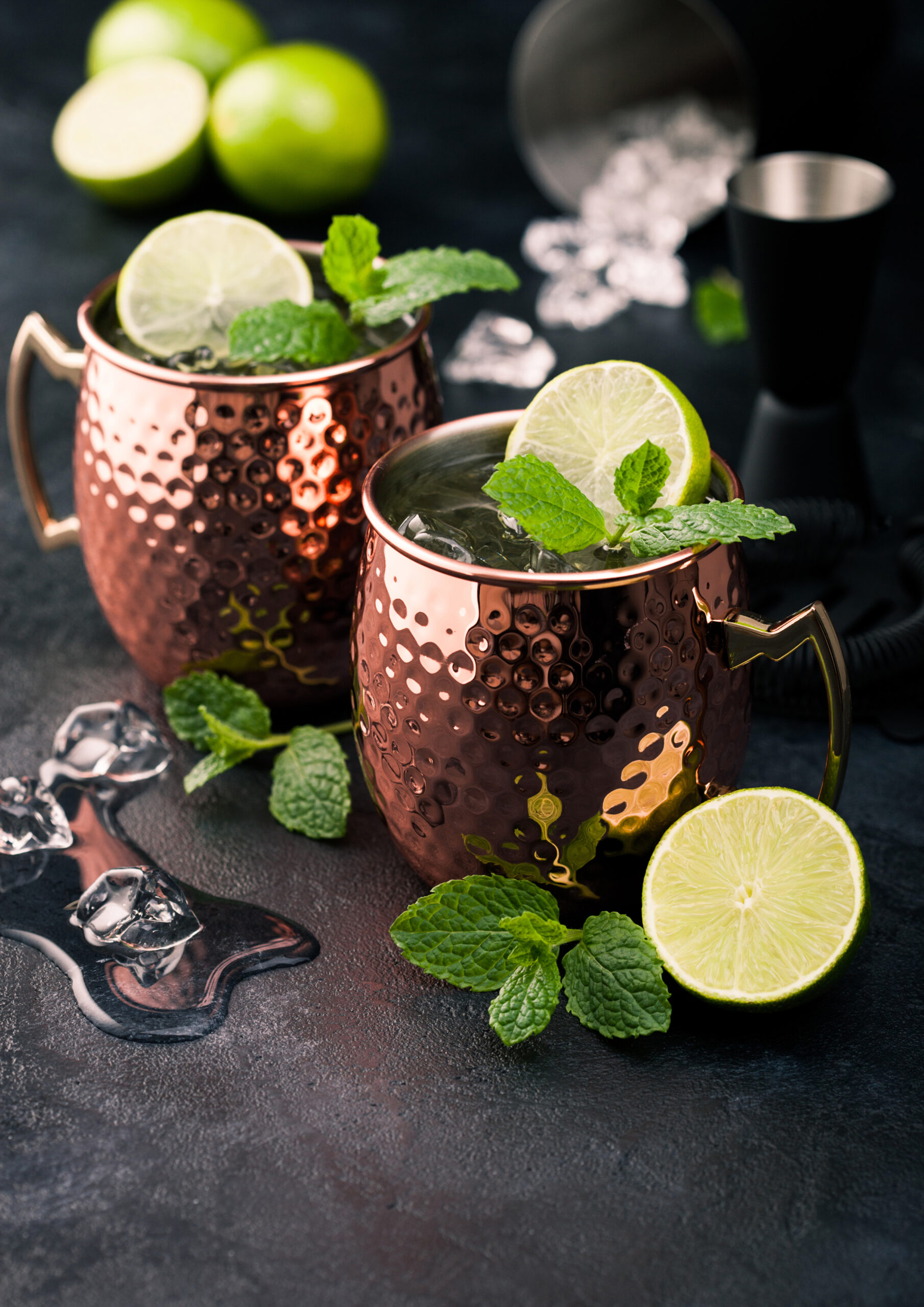 Finlandia vodca, bere de ghimbir, suc de lime, mentă, gheață